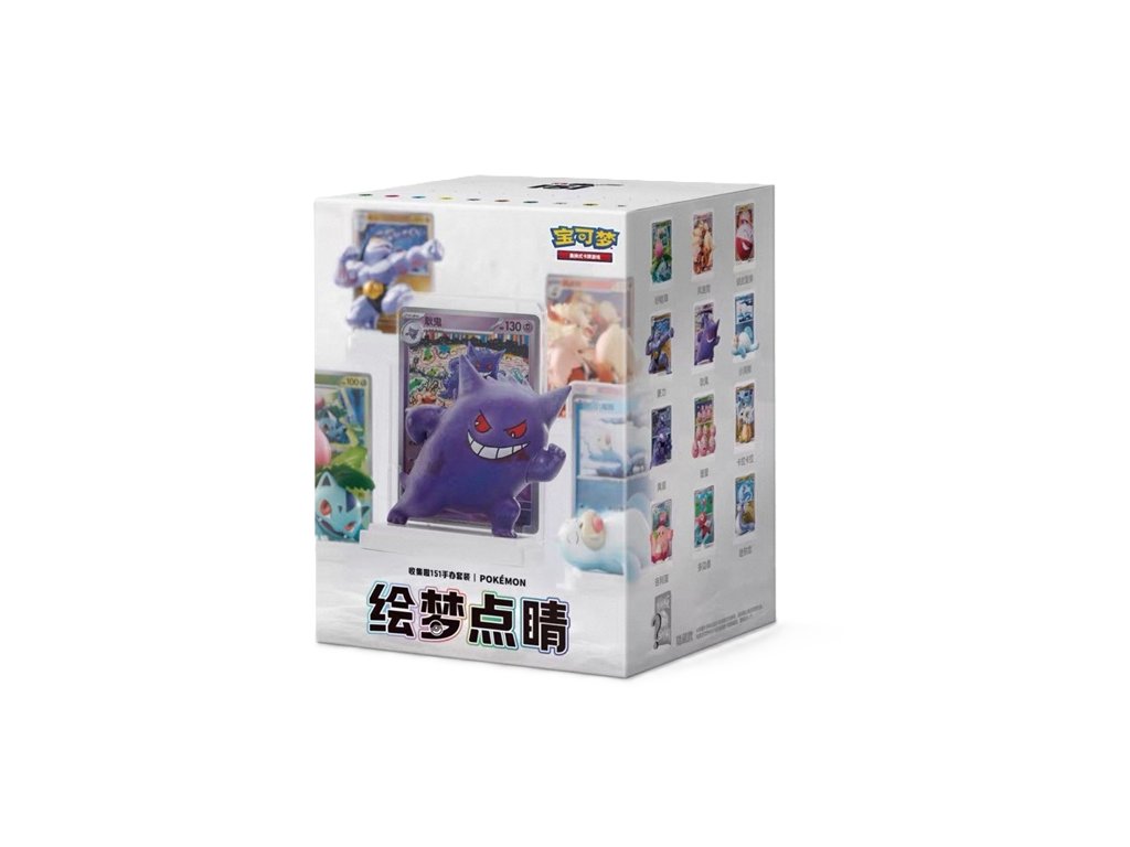 Objav nostalgiu prvej generácie s Pokémon TCG – 151 Figurine Blind Box (čínska verzia). Každé balenie obsahuje 2× Collect 151: Journey Slim Booster (5 kariet v balíčku), 1× náhodnú Pokémon figúrku (13 druhov – 12 bežných + 1 skrytá chase verzia) a 1× zodpovedajúcu holografickú kartu podľa figúrky.