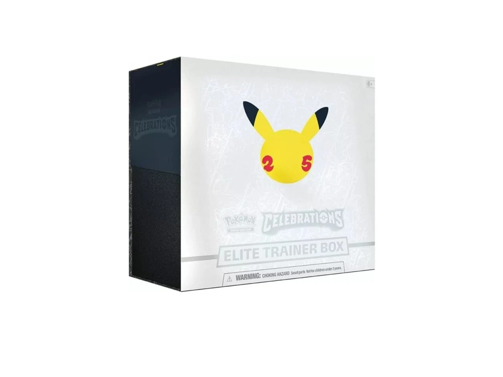 Celebrations - Elite Trainer Box, táto expanzia, ktorá obsahuje klasickú kolekciu okrem ďalších vzrušujúcich kariet, obsahuje slávnostnú prehliadku kariet, ktoré nenájdete nikde inde. Oslávte 25 rokov Pokémonov so zbierkou, ktorá zdôrazňuje niektoré z najpamätnejších momentov hry a Pokémonov.