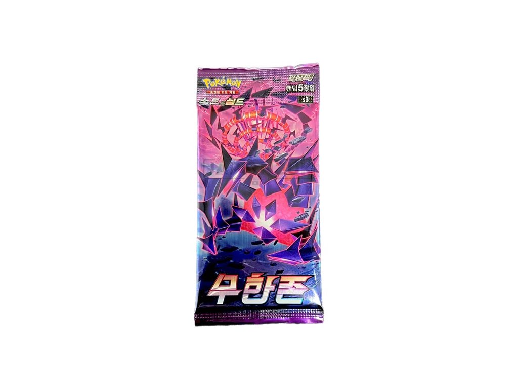Pokémon TCG Sword & Shield – Infinity Zone Booster Pack (kórejský) obsahuje náhodne miešané karty zo setu Infinity Zone, ktorý je kórejskou verziou setu Darkness Ablaze. Booster Pack sa zameriava na Pokémonov typu Darkness a ponúka šancu získať karty ako Eternatus V, Eternatus VMAX, ďalších Pokémonov V a VMAX a hodnotné tréner karty. Kórejská verzia je obľúbená pre kvalitnú tlač, autentický dizajn a priaznivú cenu, vďaka čomu je skvelou voľbou na rozšírenie zbierky alebo vylepšenie herného balíčka.