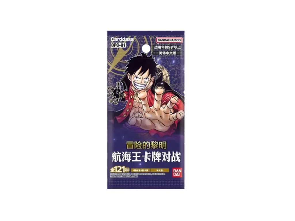 One Piece OPC-01 Booster Pack – Romance Dawn je samostatný booster balíček z prvej edície One Piece Card Game od Bandai. Každý pack obsahuje 12 náhodne zamiešaných kariet, vrátane bežných, vzácnych a potenciálne aj veľmi hodnotných alternatívnych artwork kariet.