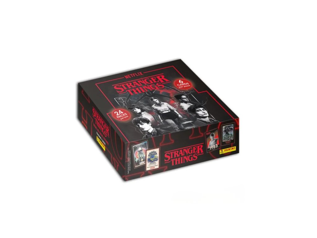 Stranger Things Hobby Box od Panini obsahuje zberateľské karty inšpirované populárnym seriálom Stranger Things. Nájdeš v ňom základné karty, špeciálne paralely a limitované insertné karty so známymi postavami a scénami zo seriálu.