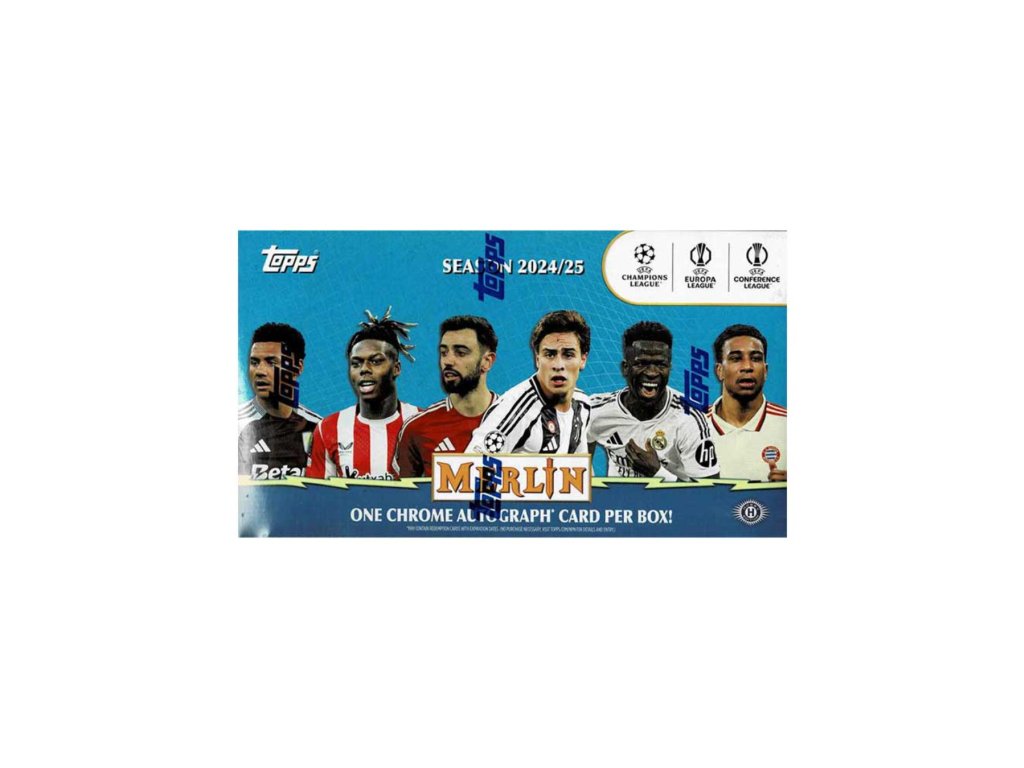 Topps Merlin 2024/2025 Hobby Box patrí medzi najobľúbenejšie futbalové kartové produkty v Európe. Kolekcia sa zameriava na UEFA klubové súťaže, mladé talenty, budúce hviezdy aj etablovaných hráčov top klubov ako Real Madrid, FC Barcelona, Manchester City, Bayern Mníchov či PSG.