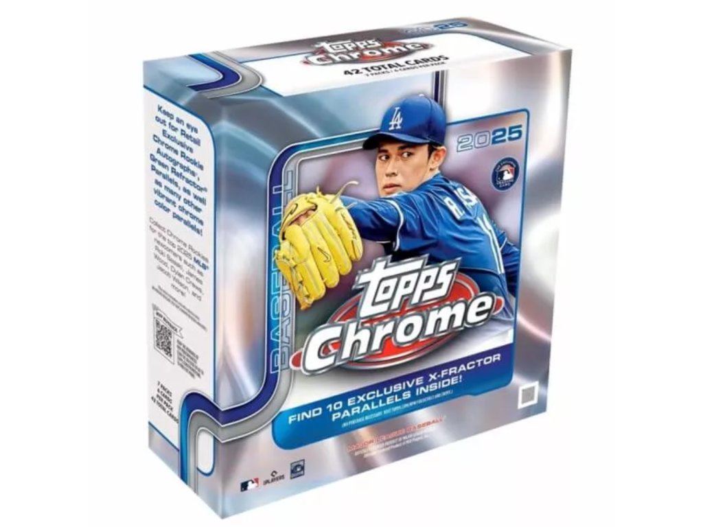 Prémiový hobby-štýlový box zo série Topps Chrome MLB 2025, zameraný na zberateľov túžiacich po farebných paralelách.