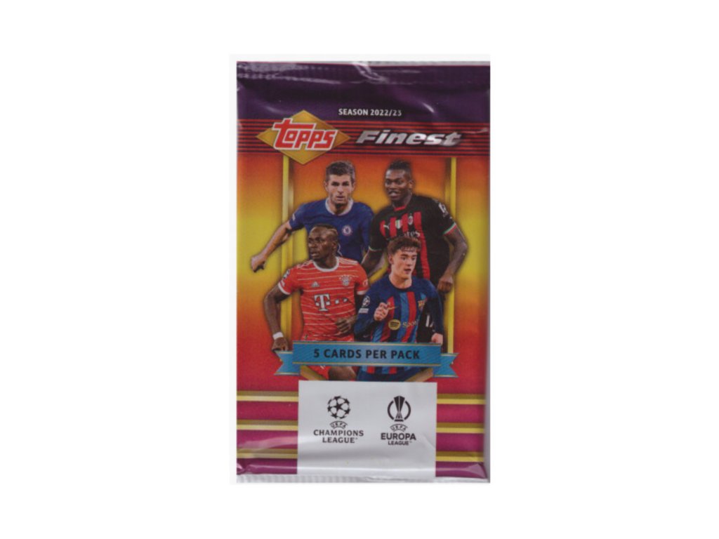 Topps Finest Flashbacks 2022/23 UEFA Club Competitions Booster / Balíček prináša klasikou inšpirovanú retrosériu kariet z populárnej Finest Flashbacks kolekcie, kde sa stretávajú legendy a súčasní hviezdni hráči európskych klubov v dizajne z roku 1994.